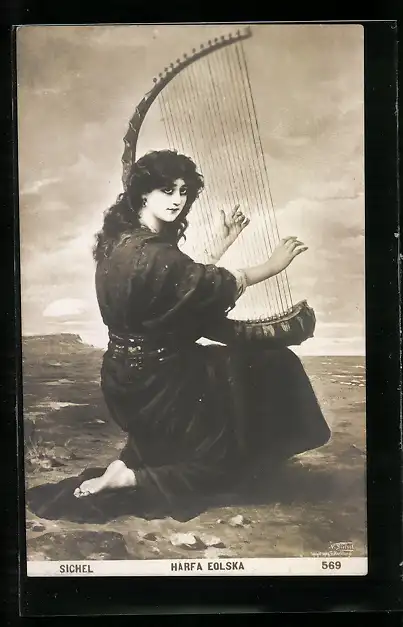 AK Harfa Eolska, Frau am Meer spielt auf Harfe