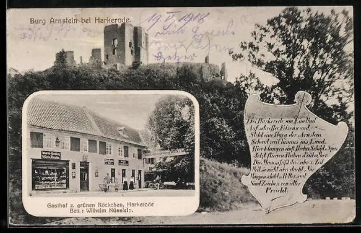AK Harkerode, Gasthof Zum grünen Röckchen, Burg Arnstein