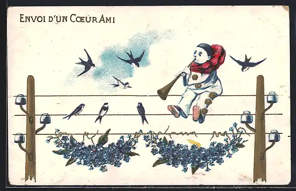 AK Harlekin auf einer Telegraphenleitung