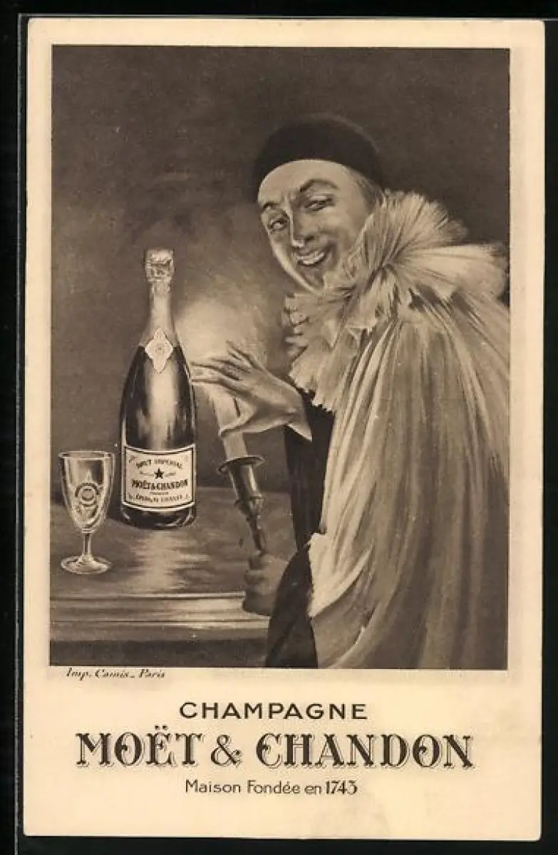 AK Harlekin bei einer Flasche Champagner von Moet & Chandon