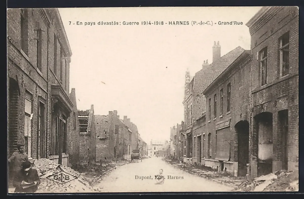 AK Harnes, Grand`Rue en ruines après la Guerre 1914-1918