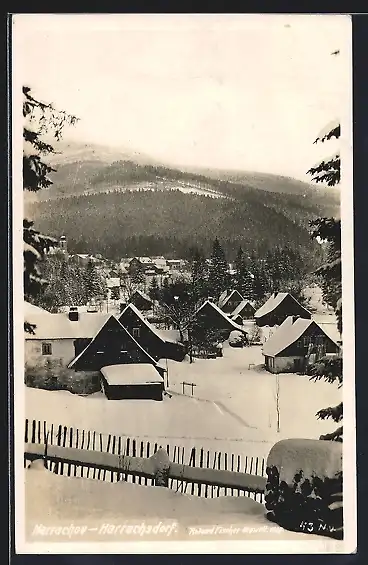 AK Harrachov /Harrachsdorf, Ortsansicht im Winter
