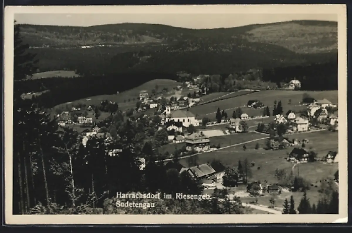 AK Harrachsdorf im Riesengeb., Ortsansicht vom Berghang aus