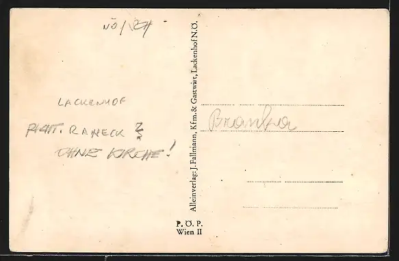 Personenbezogene Daten auf der Rückseite der Karte wurden durch blauen Textmarker unkenntlich gemacht. Die blauen Stellen sind auf die Vorderseite durchgeweicht und wirken sich negativ auf das Postkartenfoto aus