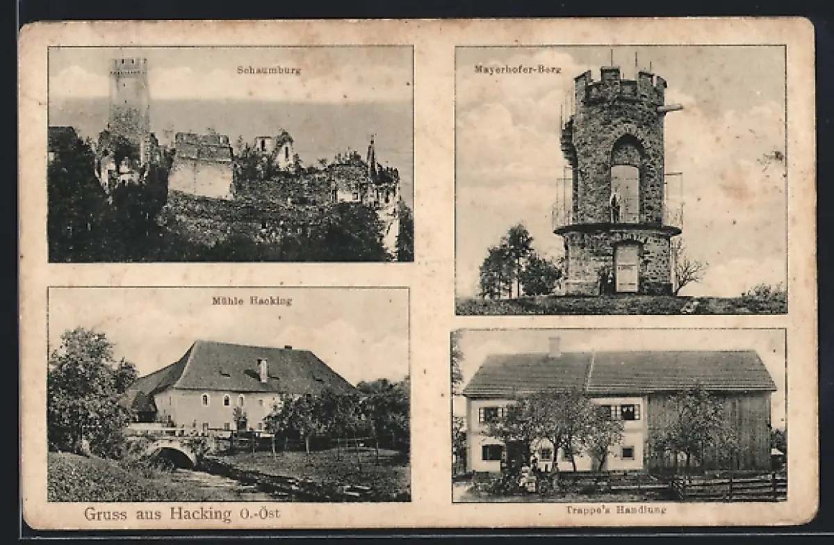 AK Hartkirchen /O.-Öst., Hacking, Mühle Hacking, Mayerhofer-Berg, Trappe`s Handlung, Schaumburg