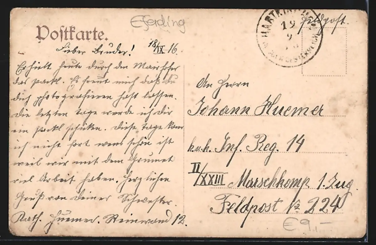 alte Ansichtskarte, gelaufen als Feldpost, Eckknick rechts oben, Bugspur links oben und links unten, sonst guter Zustand
