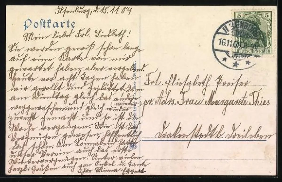 alte Ansichtskarte, gelaufen 1909, Abriebspur oben li,., guter Zustand