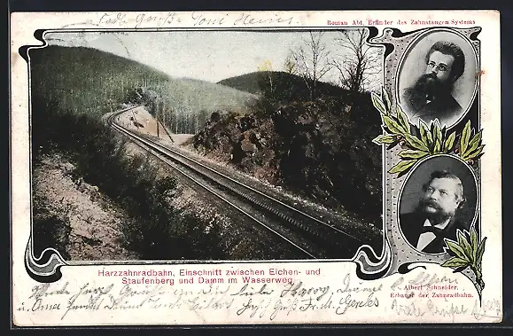 AK Harzzahnradbahn, Einschnitt zwischen Eichen- und Staufenberg, Roman Abt, Erfinder, Albert Schneider, Erbauer