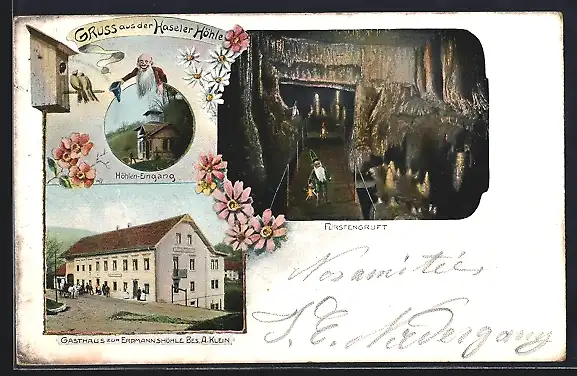 AK Hasel, Gasthaus zur Erdmannshöhle, Fürstengruft in der Haseler Höhle