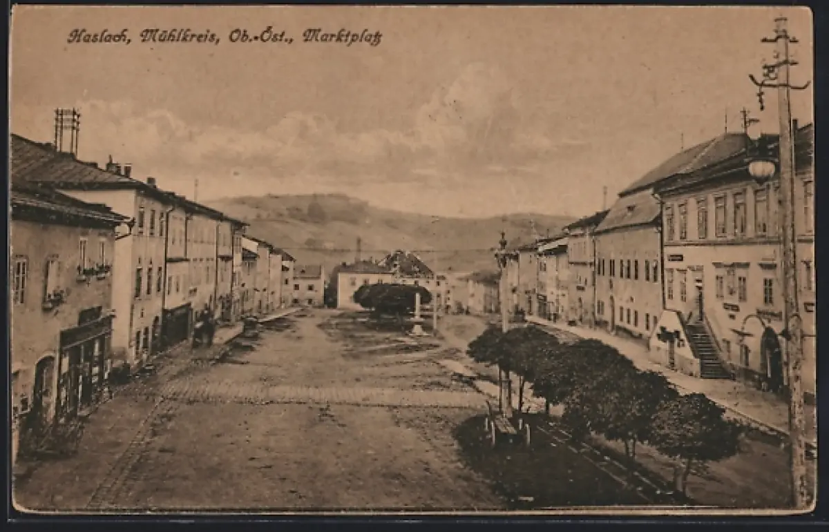 AK Haslach /Mühlkreis, Marktplatz mit Geschäften
