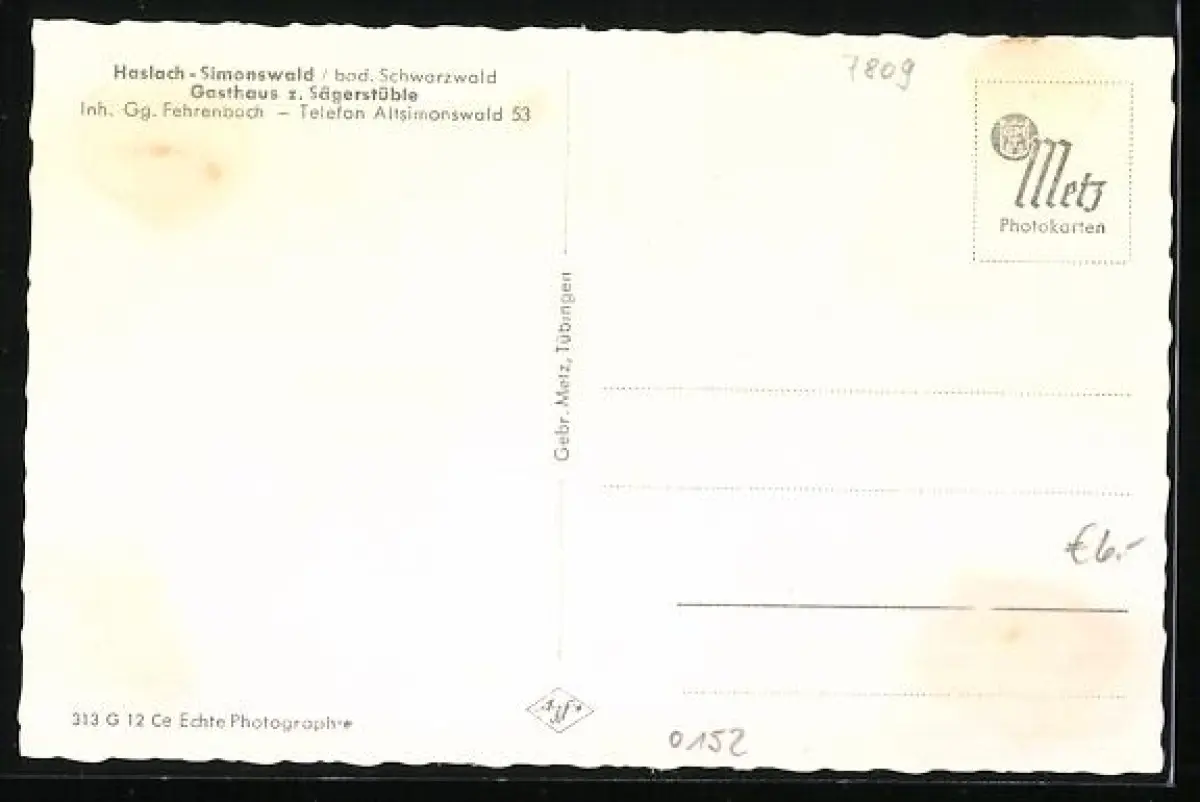 AK Haslach-Simonswald i. bad. Schwarzwald, Gasthaus z. Sägerstüble