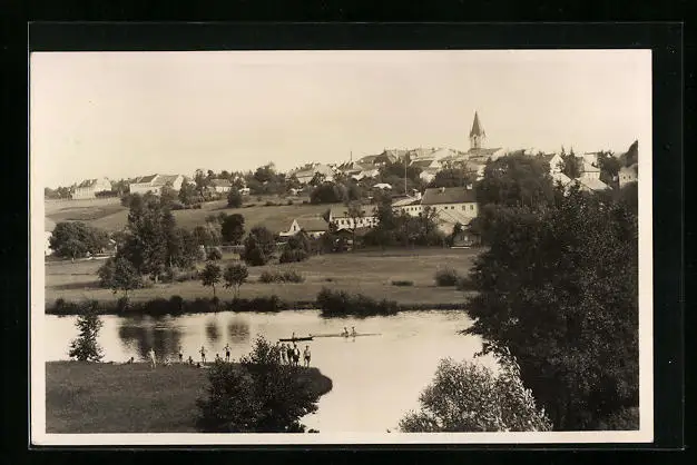 AK Haslach im Mühlkreis, Ortspanorama vom Mühlufer aus gesehen