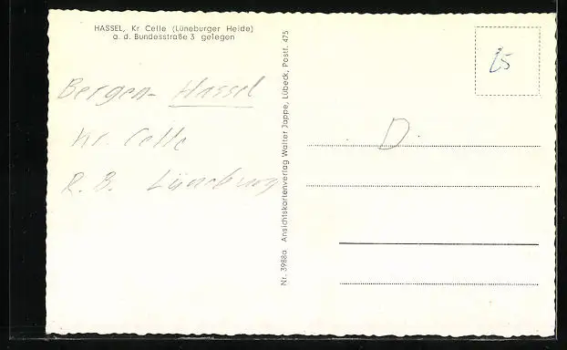 AK Hassel, Kr. Celle (Lüneburger Heide), Ehrenmal, Ortspartie, Historischer Schafstall