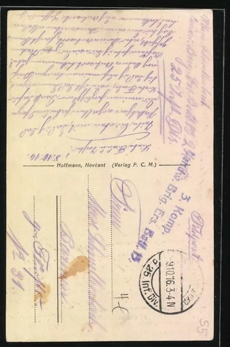 gelaufen 1916, Eckknick oben links, guter Zustand