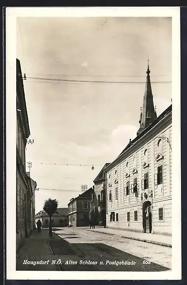 AK Haugsdorf /N.Ö., Altes Schloss und Postgebäude