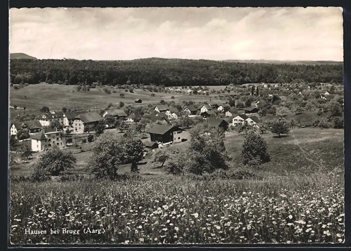 AK Hausen bei Brugg, Teilansicht mit Blumenwiese