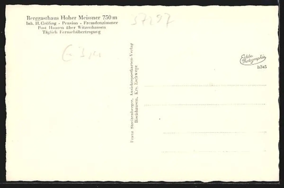 AK Hausen über Witzenhausen, Berggasthaus Hoher Meissner, Inh. H. Gröling