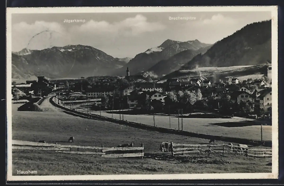 AK Hausham, Ortsansicht mit Jägerkamp und Brecherspitze