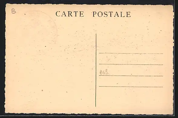 Personenbezogene Daten auf der Rückseite der Karte wurden durch blauen Textmarker unkenntlich gemacht. Die blauen Stellen sind auf die Vorderseite durchgeweicht und wirken sich negativ auf das Postkartenfoto aus