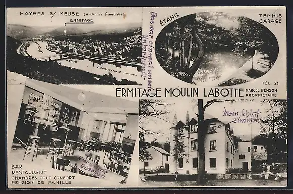 AK Haybes-sur-Meuse, Bar-Restaurant-Pension de Famille Ermitage Moulin Labotte M. Renson, Vue generale