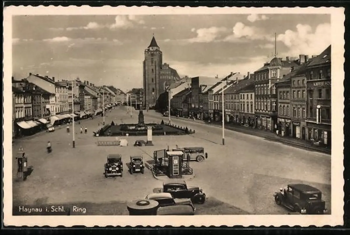 AK Haynau i. Schl., Strasse Ring mit Denkmal