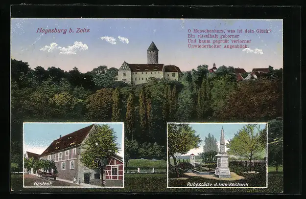 AK Haynsburg, Gasthof Adolf Reichardt, Ruhestätte der Fam. Reichardt, Ortsansicht