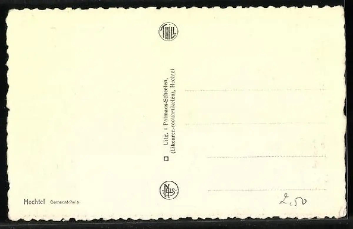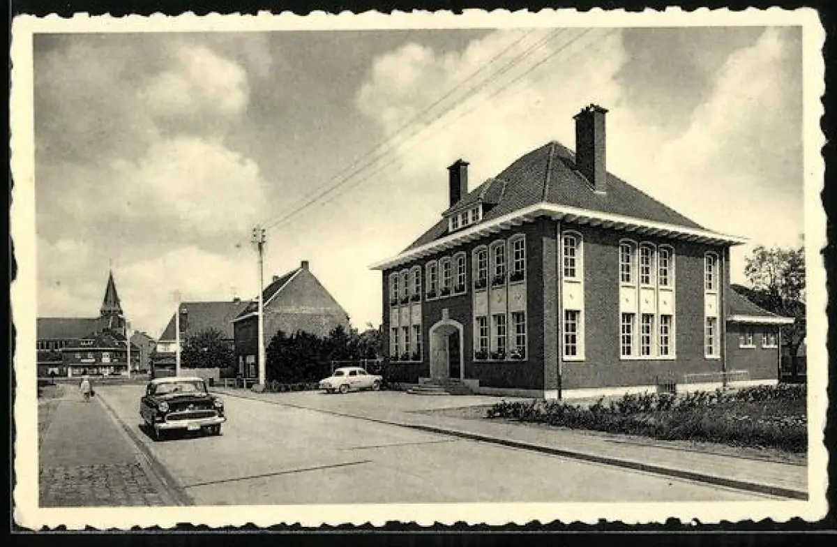 AK Hechtel, Gemeentehuis, Strassenpartie am Rathaus