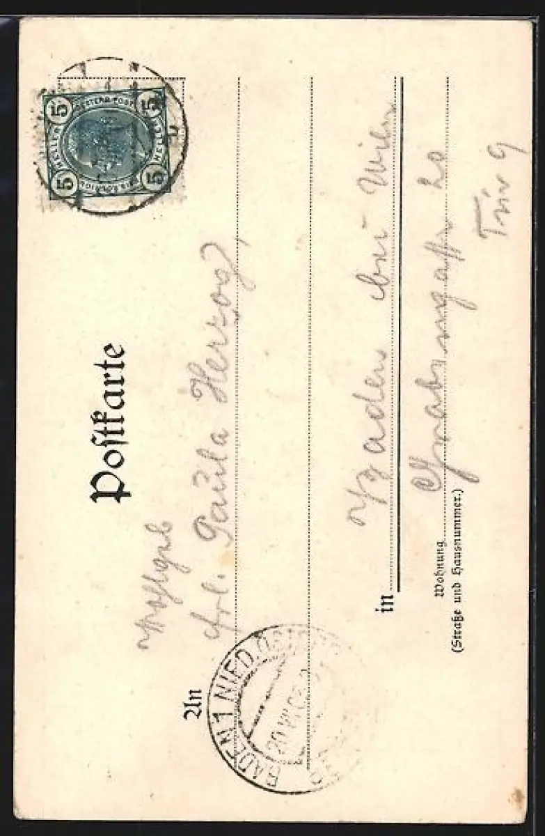 alte Ansichtskarte, gelaufen 1905, Eckknick unten re., Stempelspur, guter Zustand