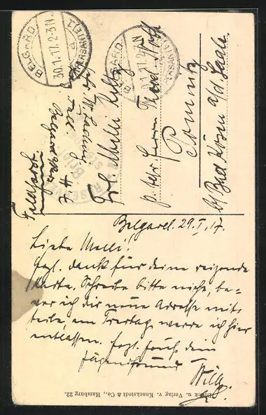 alte Ansichtskarte, gelaufen 1917 als Feldpost, Eckknicke unten, guter Zustand