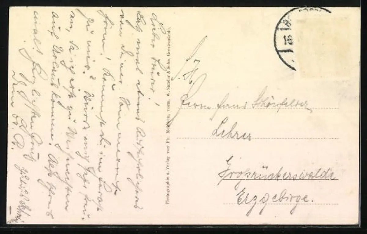alte Ansichtskarte, gelaufen, Briefmarke entfernt, guter Zustand