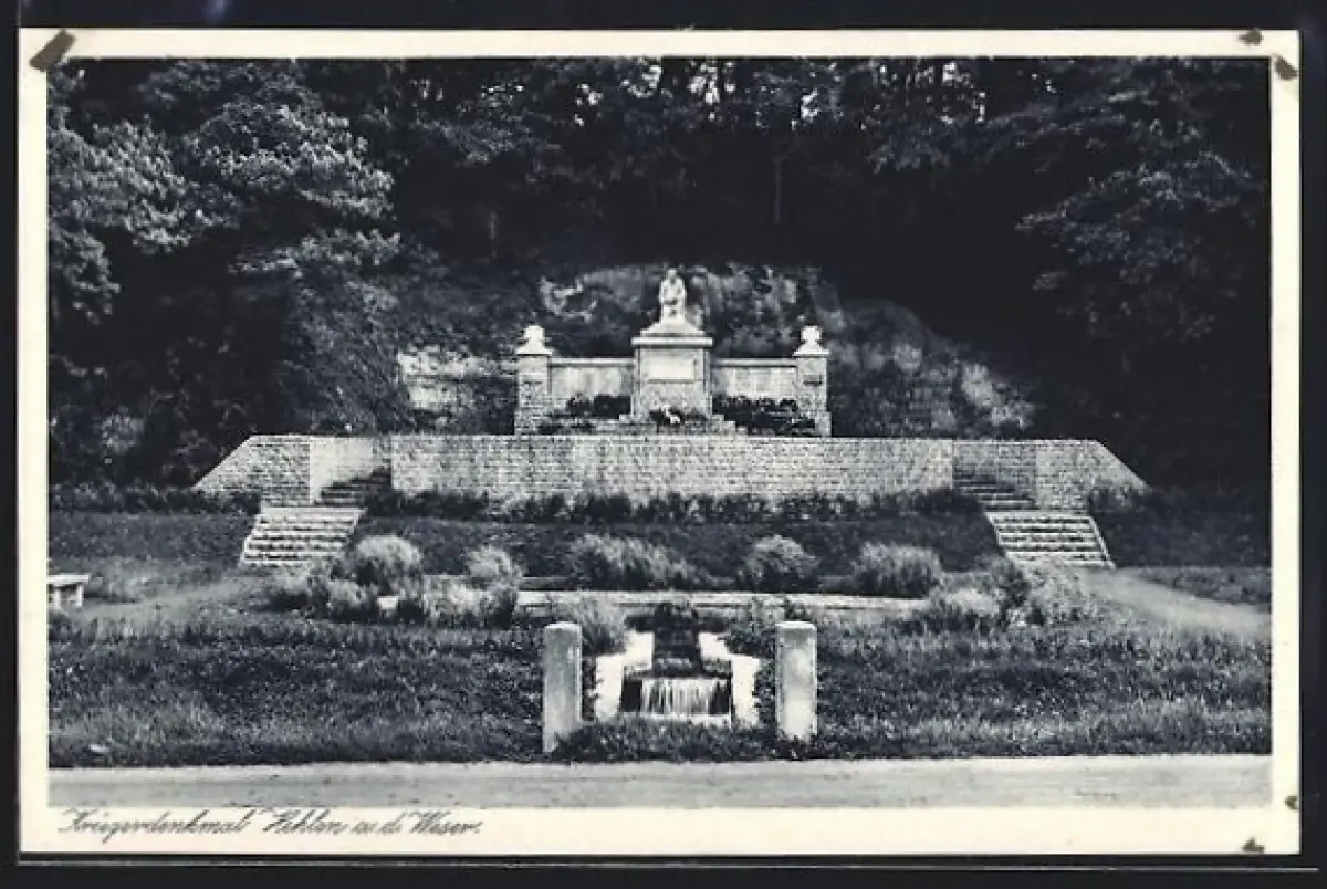 AK Hehlen a. d. Weser, Frontalansicht des Kriegerdenkmals