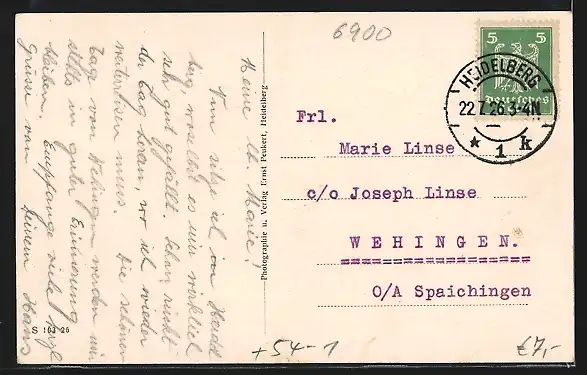 alte Ansichtskarte, gelaufen 1926, Stempelspur, guter Zustand