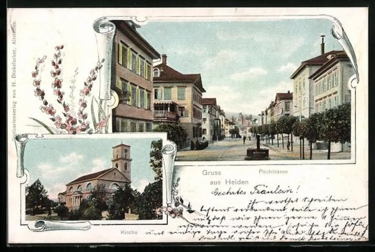 AK Heiden, Poststrasse und Kirche, Passepartout