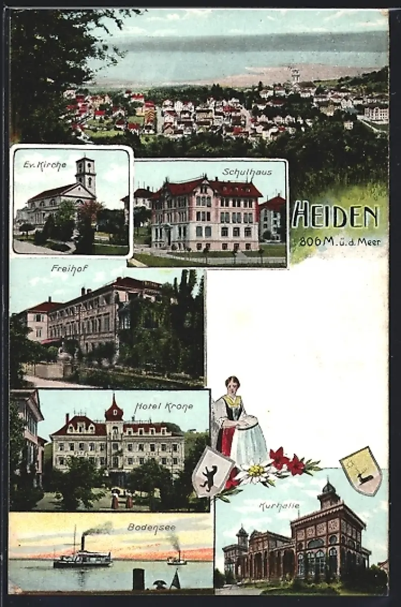 AK Heiden, Schulhaus, Freihof, Hotel Krone