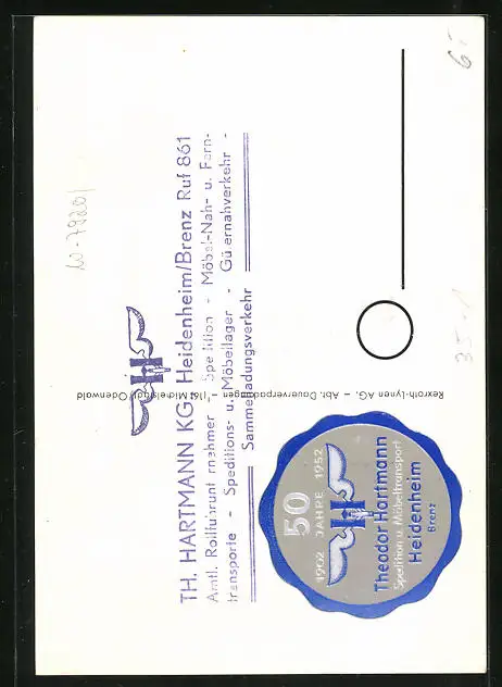 AK Heidenheim, Reklame für die Humbert-Kleiderkiste der Fa. Th. Hartmann KG, Spedition und Möbeltransport