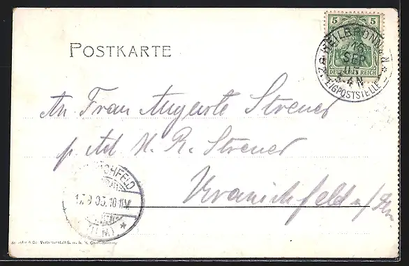 alte Ansichtskarte, gelaufen 1905, Stempelspur, guter Zustand