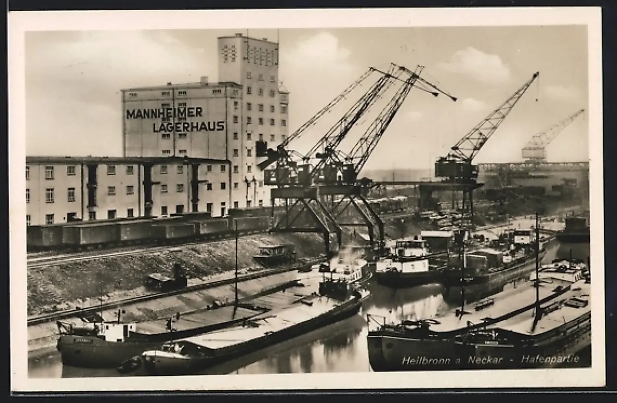 AK Heilbronn a. Neckar, Hafenpartie mit Mannheimer Lagerhaus