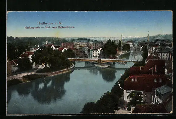 AK Heilbronn am Neckar, Neckarpartie-Blick vom Bollwerkturm