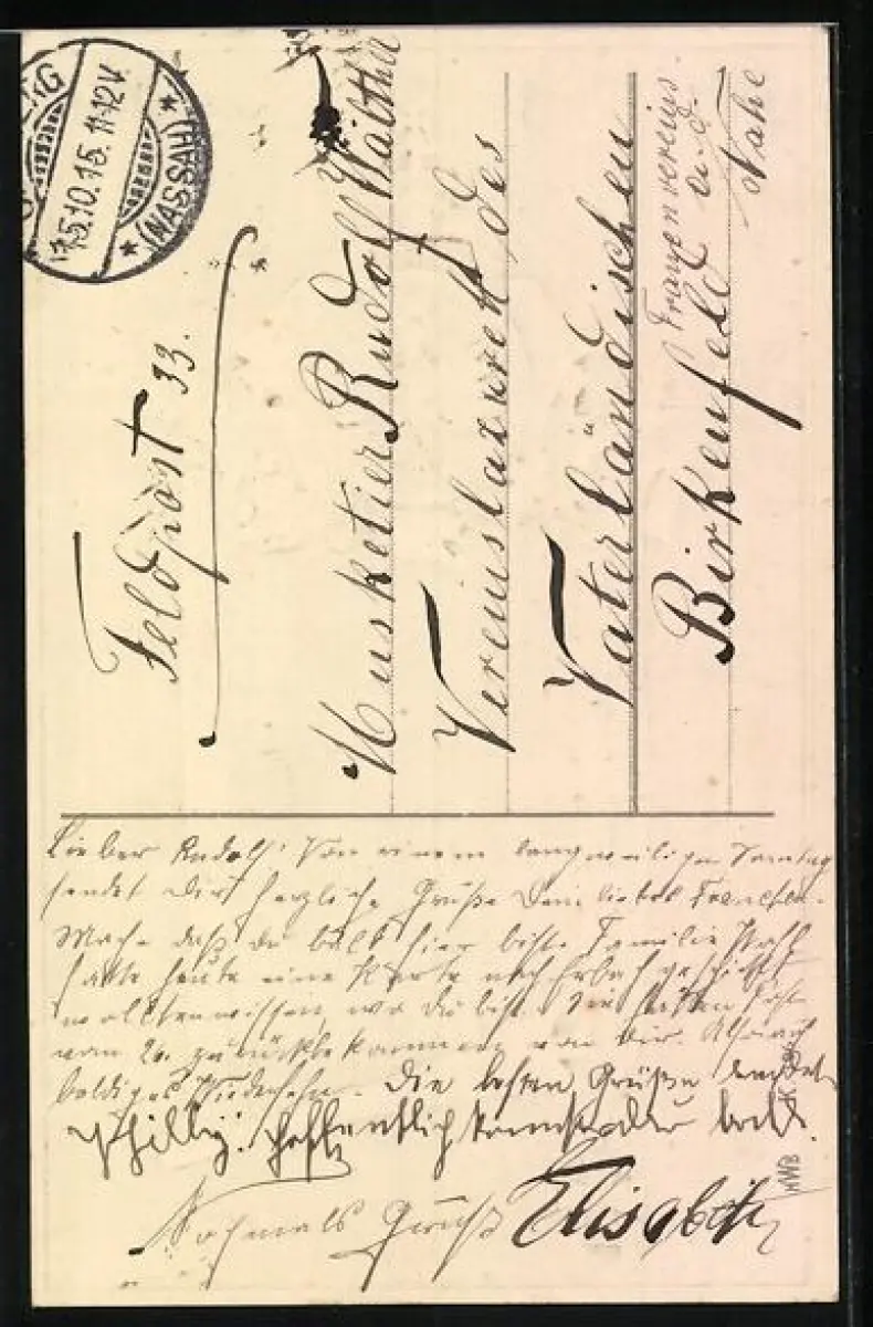 alte Ansichtskarte, gelaufen 1915, Stempelspur, guter Zustand