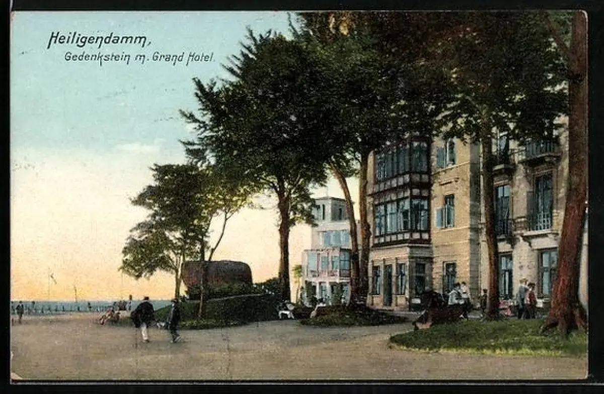 AK Heiligendamm, Gedenkstein mit Grand-Hotel