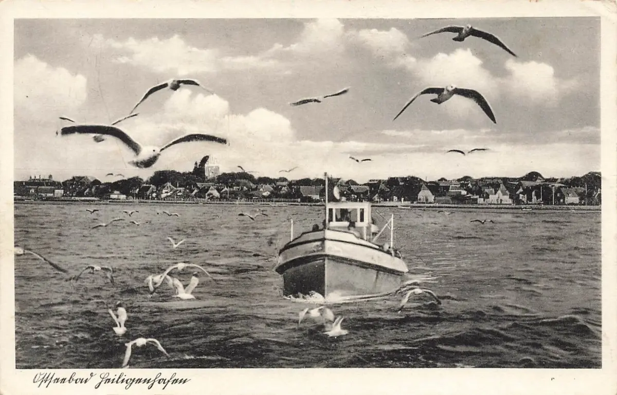 AK Heiligenhafen Ansicht Boot Möwen Schleswig-Holstein ungelaufen Postkarte