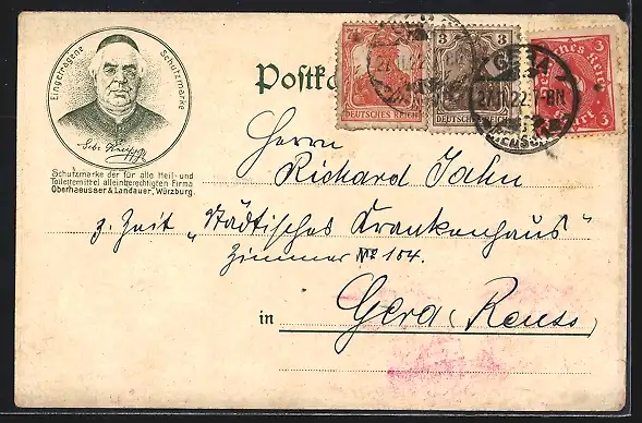 alte Ansichtskarte, gelaufen 1922, Eckknick li. oben, guter Zustand
