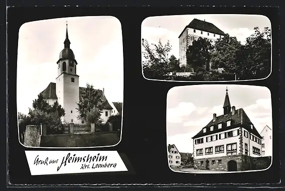 AK Heimsheim /Krs. Leonberg, Kirche, Gebäudeansicht, Strassenpartie