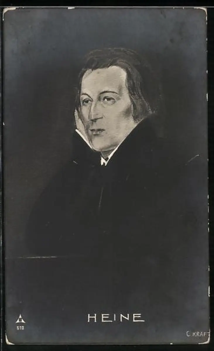 AK Heinrich Heine, Stilisiertes Porträt in dunkler Kleidung