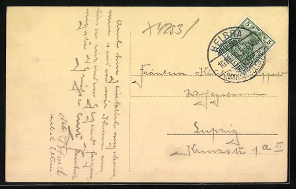 gelaufen 1910, Eckknick unten li., guter Zustand