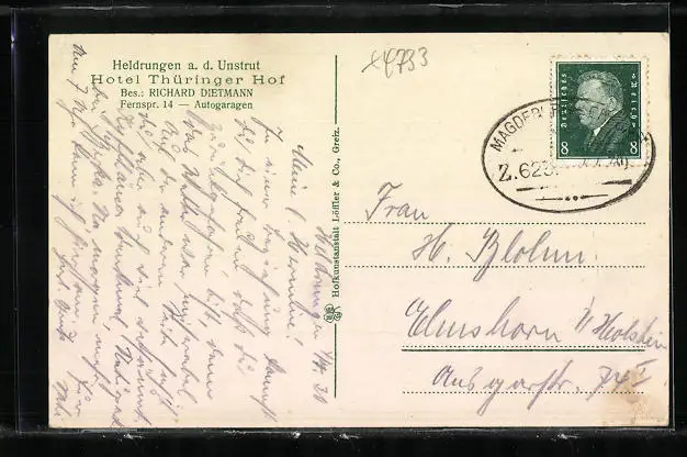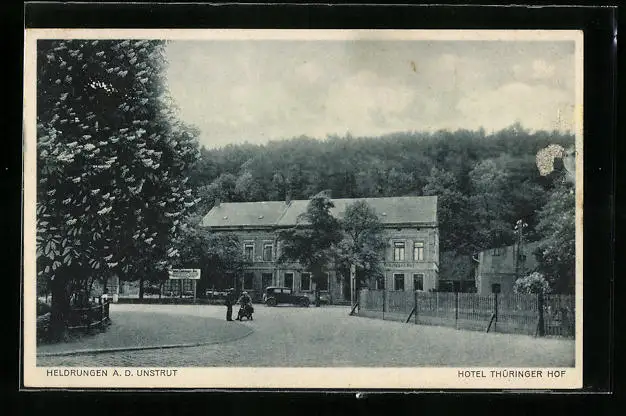 AK Heldrungen a. d. Unstrut, Passanten vor dem Hotel Thüringer Hof