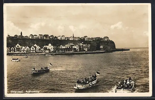 AK Helgoland, Ausbootung, Blick auf Küste mit Häuser