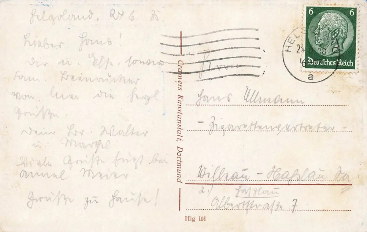 AK Helgoland Gesamtansicht Schleswig-Holstein 1935 gelaufen Postkarte