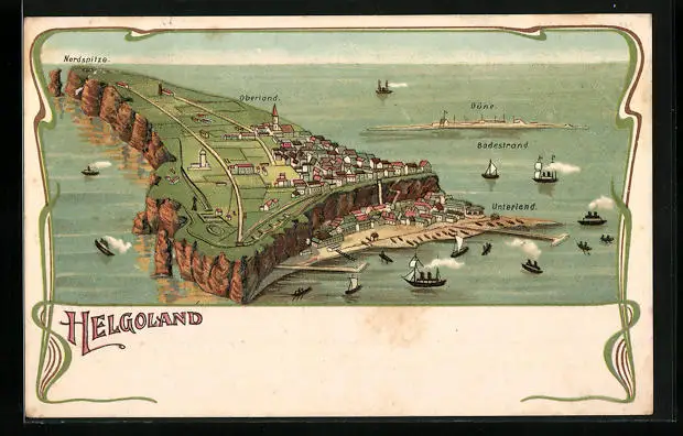 AK Helgoland, Inselansicht mit Ober- und Unterland