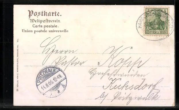 alte Ansichtskarte, gelaufen 1905, guter Zustand